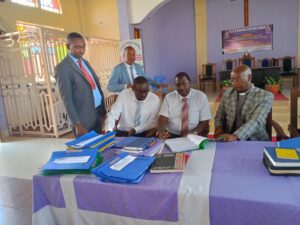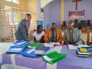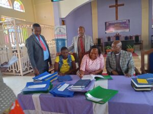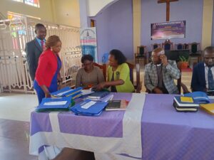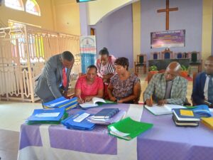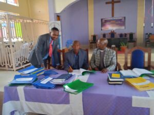 Parish groups and elders receiving and signing benchmarks